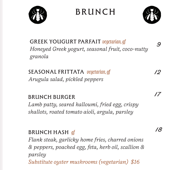 Brunch/Lunch Menu, Saturday 11am-2pm